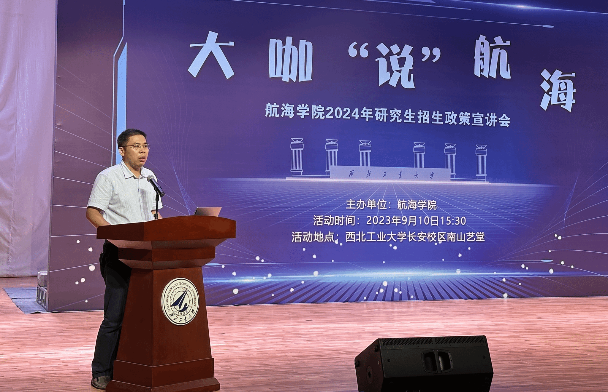 在西北工业大学南山艺堂举办“大咖说航海”主题活动,全面解读学院两大优势学科和2024年研究生招生政策。本次活动的主讲嘉宾是SM视频