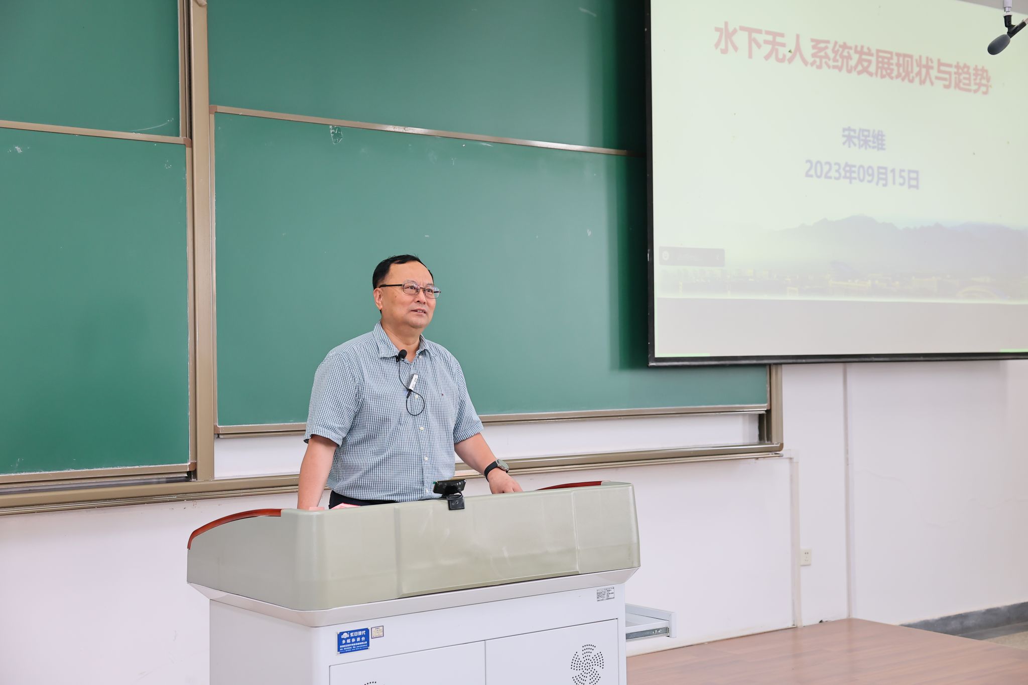 2023-2024学年新生研讨类课程《走向深蓝》于长安校区教西D306和教西D206正式启动。国家教学名师、西北工业大学校长宋保维教授受邀走进课堂,以《水下无人系统发展现状与趋势》为题,为广大新生学子讲授《走向深蓝》第一课。
