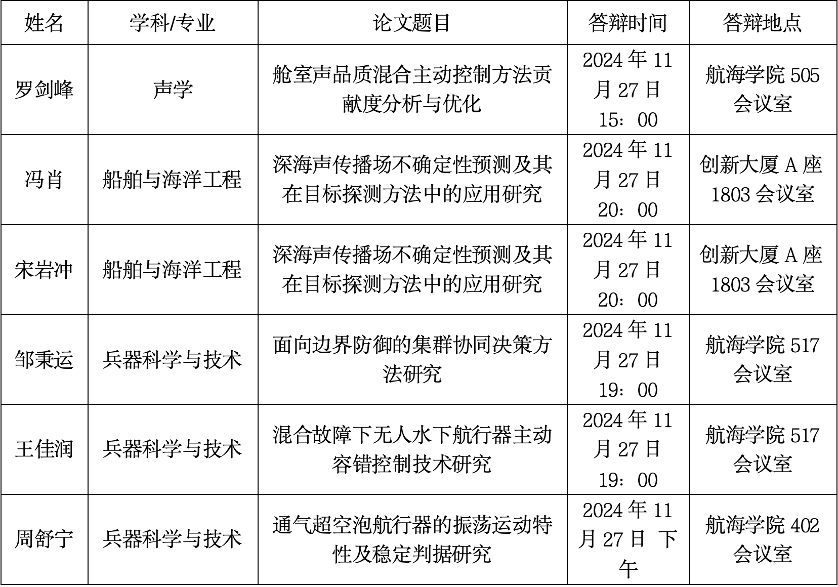 为深入推进学术型博士研究生培养机制改革,完善博士生考核机制,加强博士生培养过程管理,全面提高博士生培养质量,按照《西北工业大学学术型博士研究生培养过程管理实施细则》要求,将于2024年11月27日组织博士研究生开题公开答辩报告会,现将答辩安排公告如下: