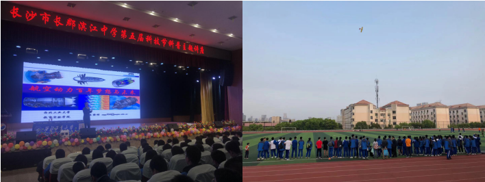 教育实验学院王掩刚院长做题为《航空动力的百年梦想与未来》的科普主题讲座,高一和高二年级共700多名师生调课听取讲座。王掩刚院长从航空发动机最简单的原理——牛顿第二和第三定律出发,介绍了航空发动机的工作原理以及在工业革命时期到信息化时代的发展历程,讲述了在人类的飞天梦想之下,航空发动机从蒸汽发动机、活塞式发动机、涡轮发动机到涡扇发动机的变革与创新。王院长以我国在航天发动机领域的发展历程以及发动机在航空方面的应用,阐述了航天发动机的发展对于一个国家航空力量的重要性,同时也指出了科技创新的重要性,他衷心希望对航空动力感兴趣同学报考相关方向的研究生,为国家航空航天事业贡献自己的力量。报告会后,长郡滨江中学与我校就学生培养、招生、志愿填报等方面进行了广泛交流。