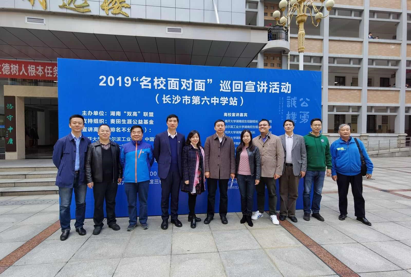 院长潘光教授和湖南省招生组组长戚茜赴湖南长沙周南梅溪湖中学、长郡斑马湖中学、长郡滨江中学、雅礼洋湖中学和长沙市六中5个重点中学,参加2019“名校面对面,梦想加速度”高校招生活动,进行高校宣讲和现场咨询;并受邀参加了周南梅溪湖中学5周年校庆活动和集体优秀生源基地挂牌仪式。
