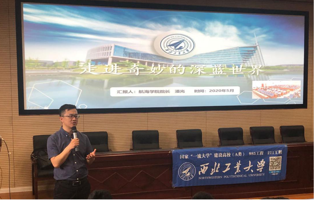 25日中午,宁波效实中学组织两校区拔尖班学生参加本次“领航计划”活动。招生办主任管兴华首先介绍了学校在浙江招生录取情况。随后,潘光院长领航浙江学子《走进奇妙的深蓝世界》。潘院长先从“海洋是什么?”开始发问,结合海洋大事件,以及我国海洋权益面临严峻的考验和挑战,阐述了国家海洋战略的意义。接着,重点介绍了水下航行器和声纳是海洋开发和防卫的重要装备之一,并生动形象的列举了几个典型的应用案例。最后,展示了SM视频