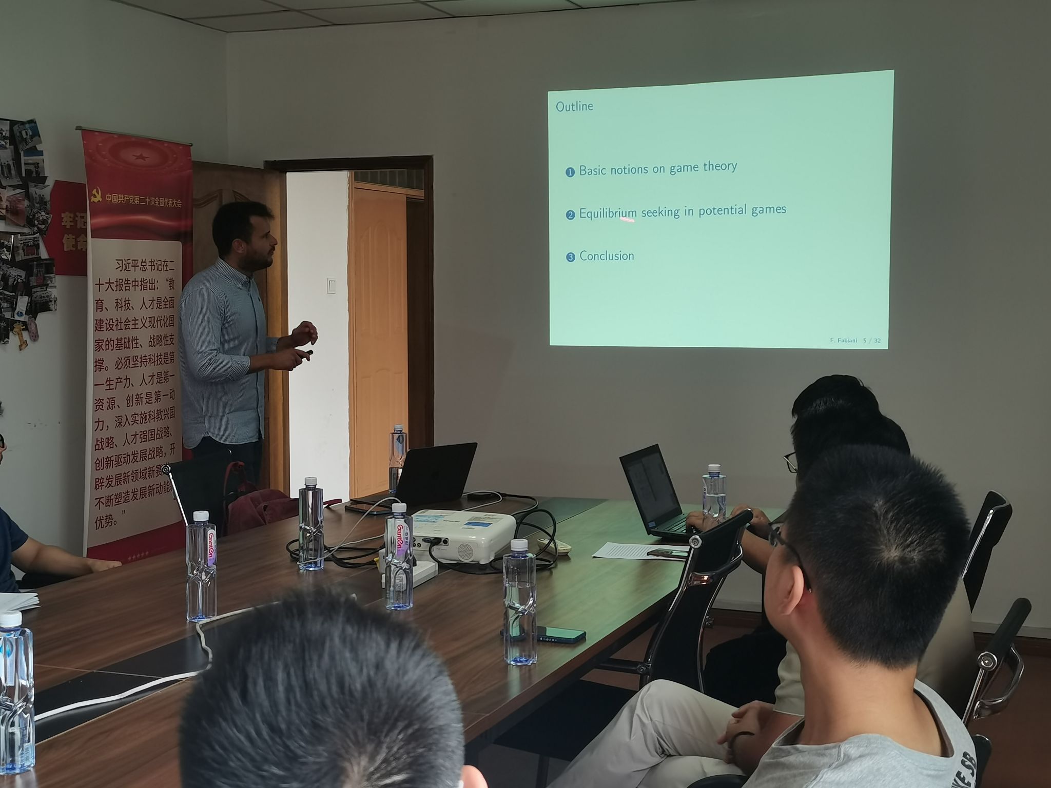 李乐副教授的邀请,在学院517会议室,为学院师生作“Game-theoretic control of complex multi-agent systems”为主题的报告。会议由李乐副教授主持,学院20余名师生参会。