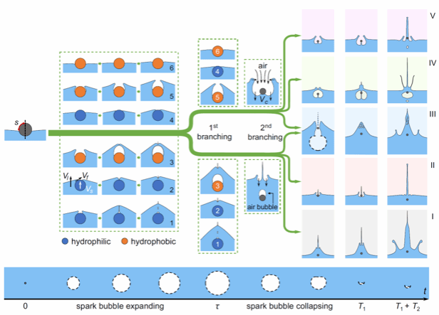 进一步研究揭示了气液界面演化的两次分叉过程,理论分析所提出的无量纲参数能够对不同射流模式有很好的预测效果。
