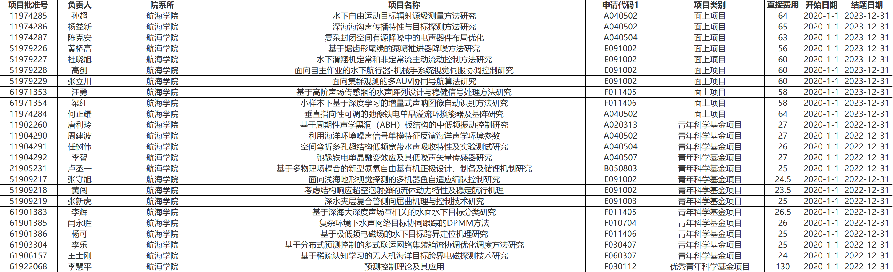 国家自然科学基金获批项目清单
