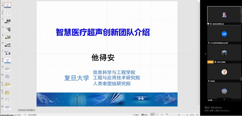 特别邀请复旦大学他得安教授、中科院声学所鄢社锋研究员两位国家杰出青年基金获得者,为大家带来国基金申报线上报告交流会,会议由杨坤德副院长主持,学院一百余名师生参加了会议。
