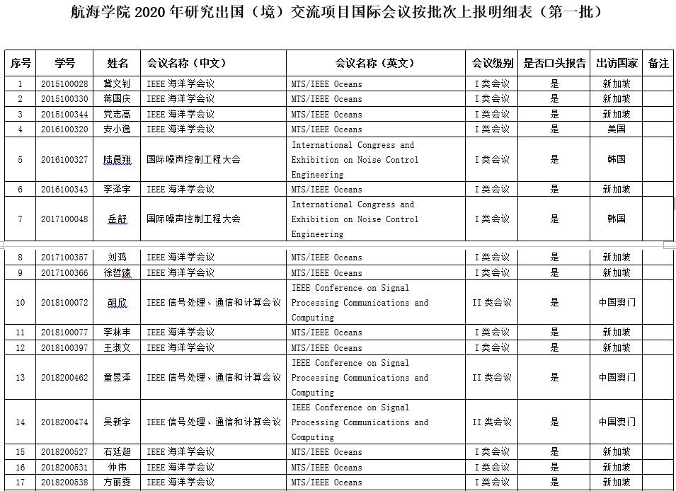 关于公布SM视频 2020年研究生出国(境)交流项目国际会议(第一批)受资助学生名单的通知