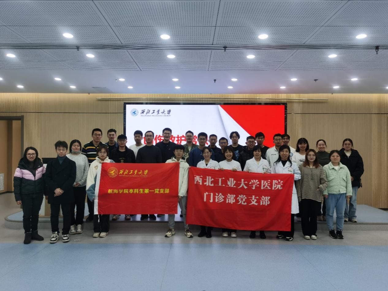 本科生第一党支部与西北工业大学医院门诊部党支部联合开展创伤救护常识和技能培训活动。