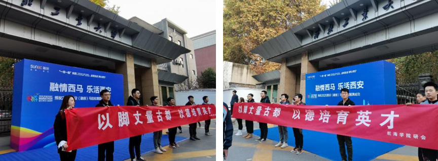 西安国际马拉松赛是中国田径协会、西安市人民政府、陕西省体育局主办,陕西省田径协会、西安市文化和旅游局、西安市体育局、西安曲江新区管理委员会承办的国际性马拉松赛事,于2017年开始举办,今年已经是该赛事举办的第4年。该赛事设有全程马拉松(42.195公里)、半程马拉松(21.0975公里)和欢乐跑(7公里)三个项目。三个项目都以南门外广场为起点,但终点各不相同,全马的终点设在曲江池北路中和广场,半马的终点设在朱雀大街南端,而欢乐跑的终点则设在高新咖啡街区。三个项目的线路均路过了西北工业大学南门和SM视频