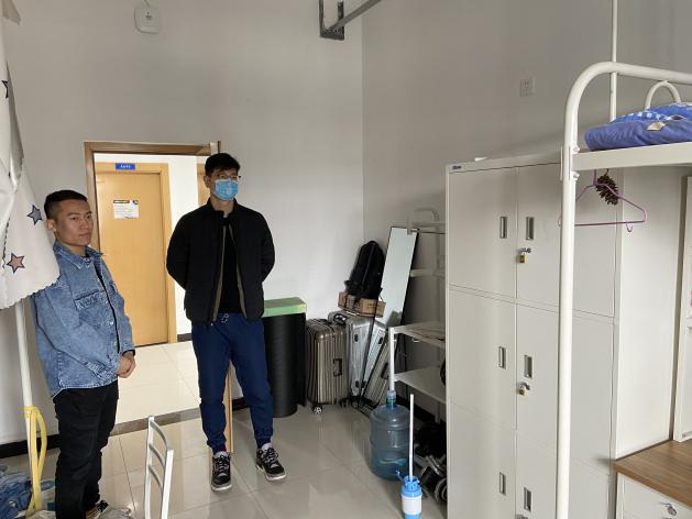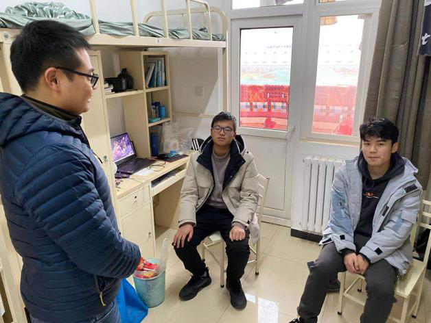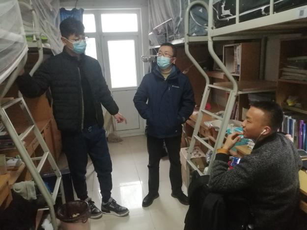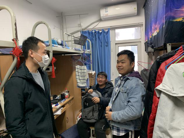 27日下午,张龙与2017级辅导员杜鹏,2018级辅导员黄潇来到友谊校区学生公寓看望返校的SM视频