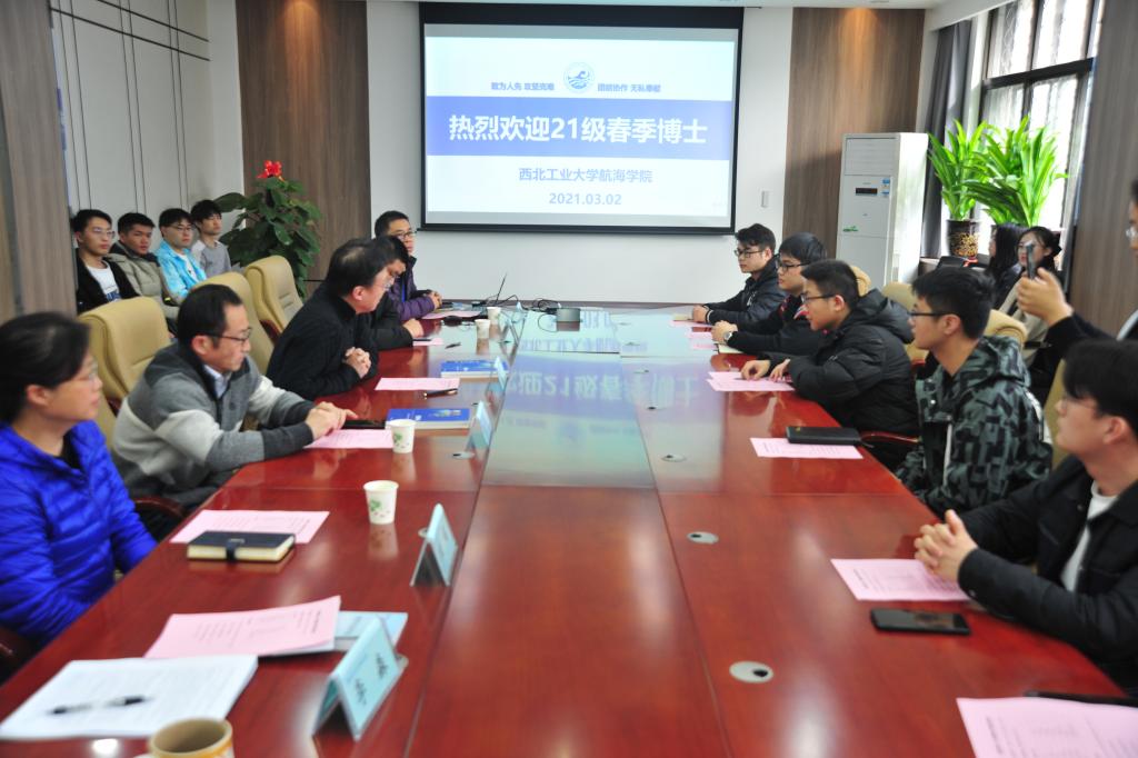 2021级春季入学博士全部成功报到,并在201会议室举行2021级春季博士新生见面会。院长潘光,党委书记孙华强,副院长崔荣鑫,副书记王银涛,研究生与学科建设办公室主任任鹃、秘书李淼,博士生辅导员张晓燕参加了见面会,会议由王银涛主持。
