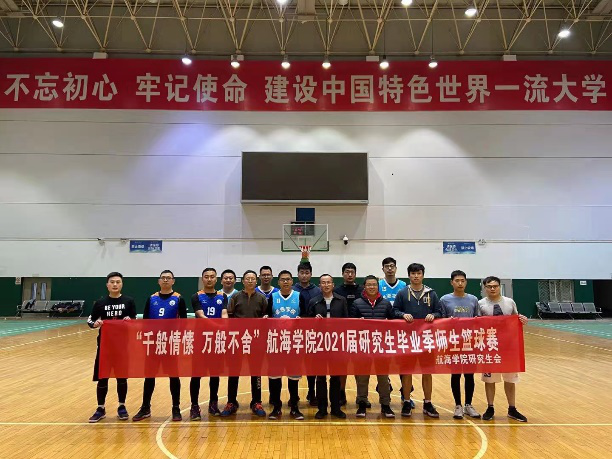 在友谊校区翱翔训练馆举办2021届研究生毕业生师生篮球赛,党委书记孙华强、副书记王银涛、院长助理张龙等近十名教师代表,以及研究生毕业生代表十余名学生参赛。