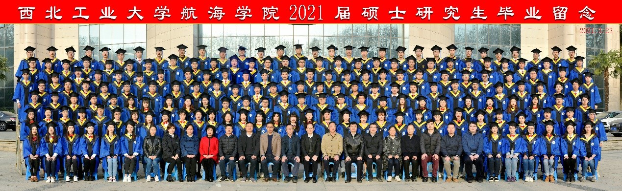 2021届研究生全体毕业生在友谊校区图书馆广场拍摄毕业照。学校党委常委、副校长杨益新,学院院长潘光,党委书记孙华强,党委副书记王银涛,副院长杨坤德、崔荣鑫,院长助理李慧平、张龙,学院综合办公室、研究生与学科建设办公室、学生工作办公室老师和科研团队负责人、导师代表参加了合影,与196名硕士毕业生一起记录难忘时刻,为硕士研究生生涯画上圆满句号。