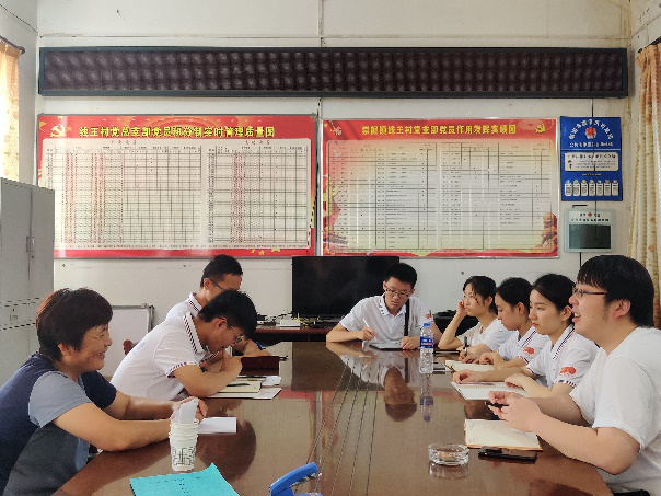 实践队依托基层调研、支教帮扶、政策与产业引导等多个方面展开本次实践。通过设计问卷走访农户,队员们了解到当地存在的一些普遍性问题,如收入不确定性较大,销售渠道单一等;通过村委会座谈,实践队提出依靠电商扶贫方式,吸引青年劳动力回乡创业,并与村支部书记郭银凤探讨了怎样加强乡村产业现代化等问题;在线王小学支教中,队员根据专业特色分别为学生讲述了法律课堂和SM视频