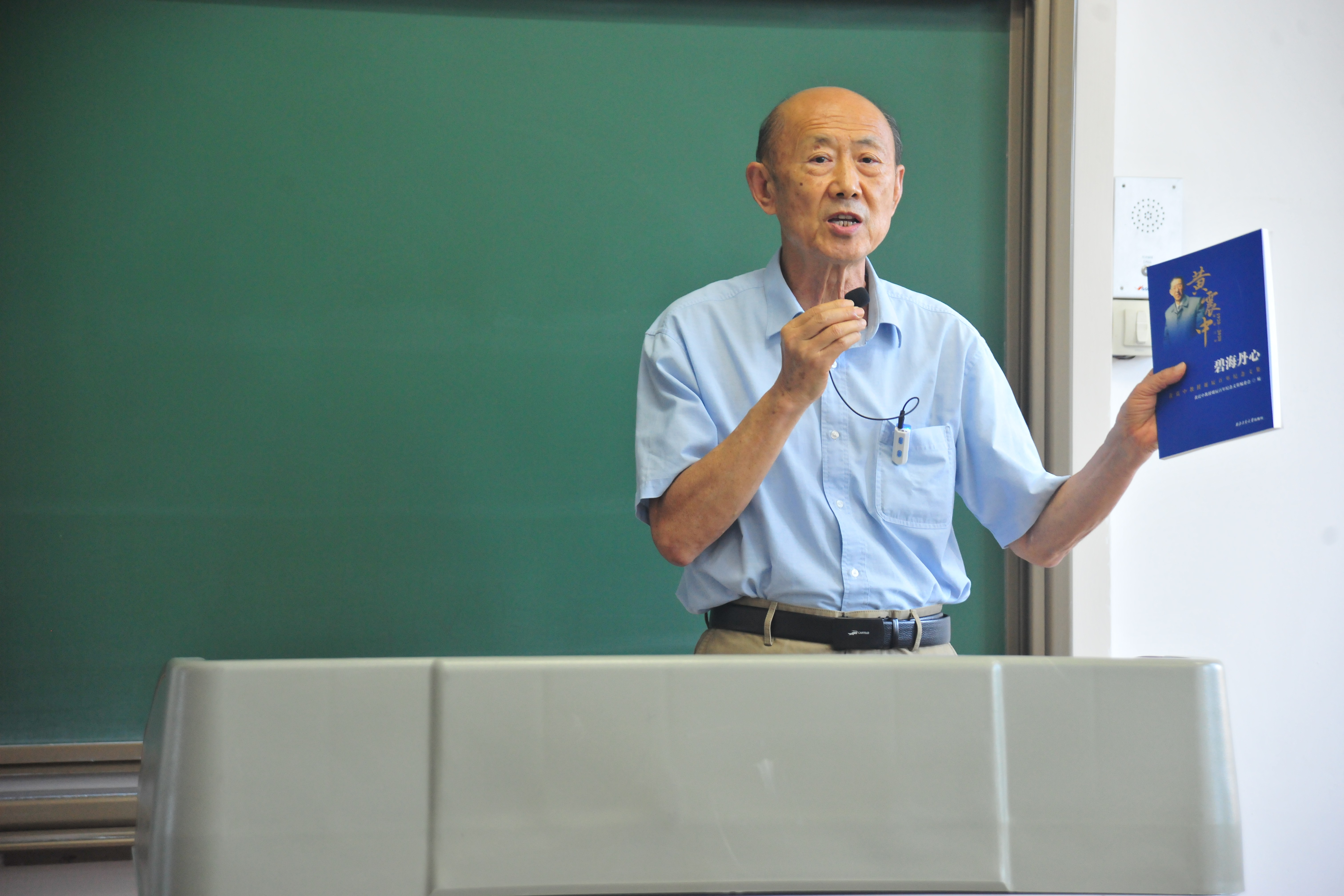 前院长黄建国教授讲话。面对着年轻的面庞,黄建国说到,大学求学是人生中非常宝贵的学习机会,是人生历程中特殊且闪光的特殊经历。并介绍了《碧海丹心——黄震中教授诞辰百年纪念文集》,书中讲述了SM视频