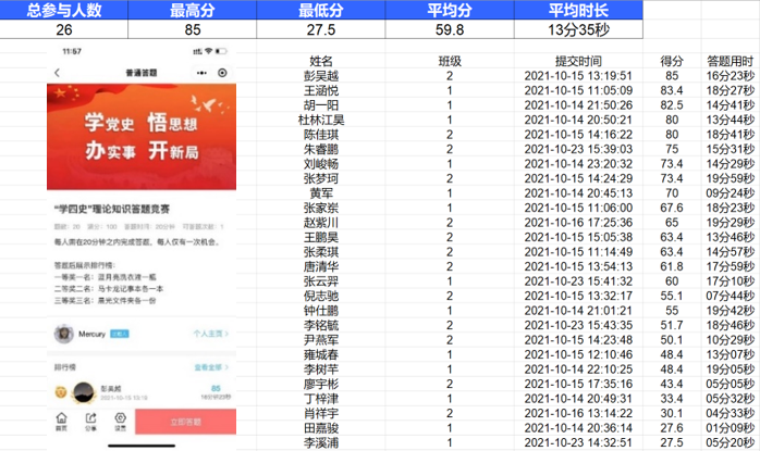 该活动于2021年10月10日开启,共计26名支部成员参与。题目内容涉及中共党史、党风廉政建设、党章党规等多个方面,题型包含单选、多选、填空、判断,激发了同学们对于党史学习的浓厚兴趣。