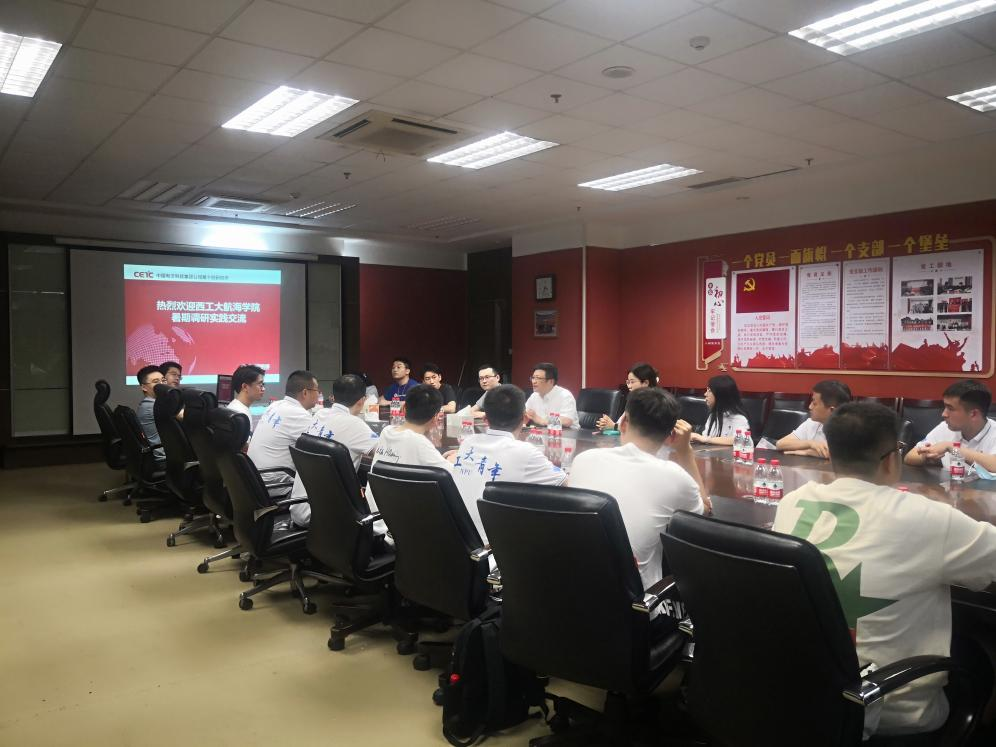 6月27日下午,实践队来到中国电子科技集团公司第十四研究所。十四所二部党委书记夏贤江、一部和二部科室领导及校友代表参加了座谈会,分别介绍了不同部门的科研内容、人才需求、个人职业发展和薪酬待遇等信息。座谈期间大家就关心的职业获得敢、工作强度、出差情况和部门文化等情况进行了深入交流,夏贤江通过分享其个人成长和发展的真实事例,详细解答了同学们关系的问题。在前期沟通和现场座谈的基础上,实践队有两名同学通过了专业技术面试,获得了研究所领导的好评。交流过程中双方均表示愿意就毕业生就业招聘、学生社会实践等方面加强合作,互惠互利,合作共赢。