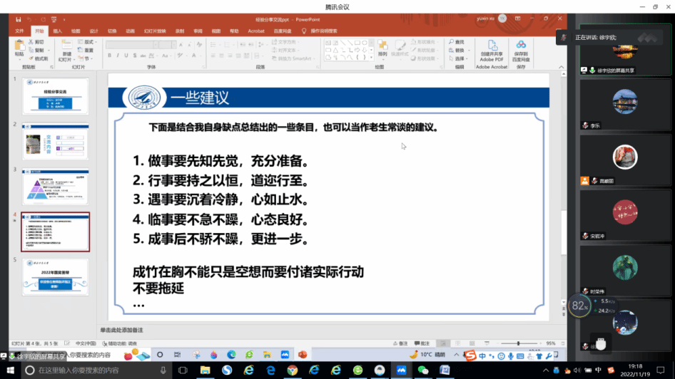 分享者们从论文撰写、科研竞赛、师生关系以及心态调整等各个方面进行了分享,参会者也就自己困惑的地方进行了提问。