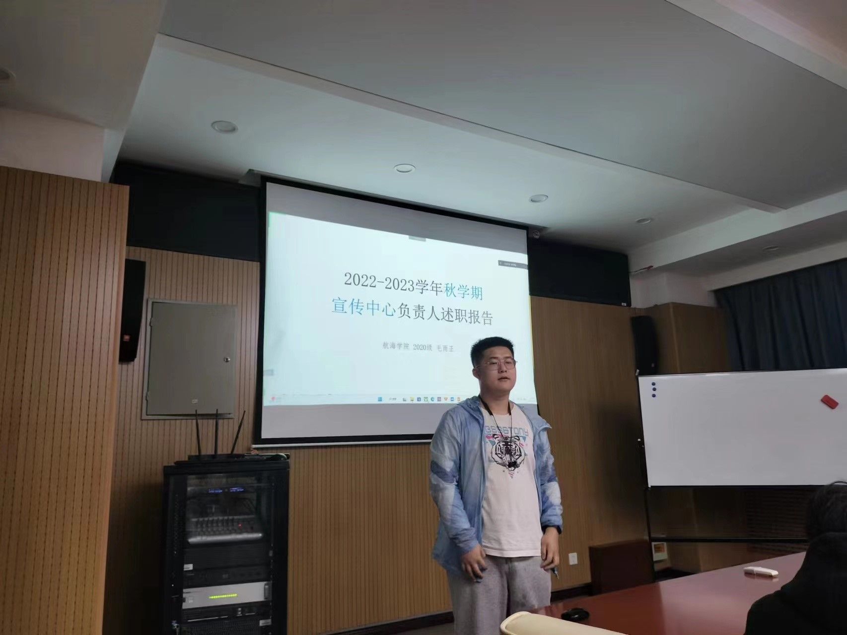 而后,宣传中心负责人毛雨正总结宣传中心上学期的工作。宣传中心积极参与到SM视频