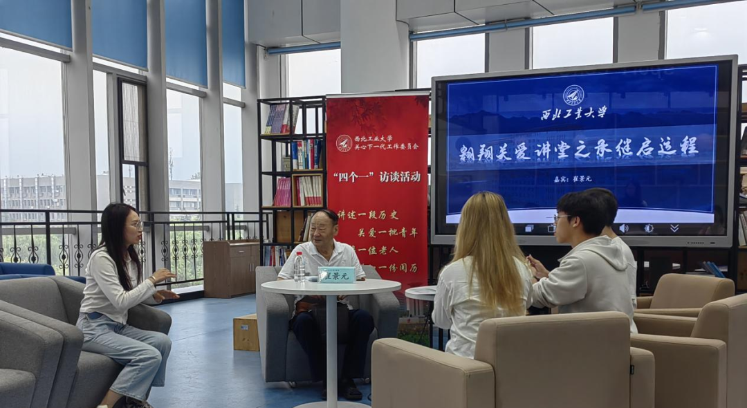 退休老教师崔景元老师进行了一次亲切而深刻的访谈,由学生代表朱心怡、秦川、赵宣宇、黄诚、蔡文博同学进行采访。