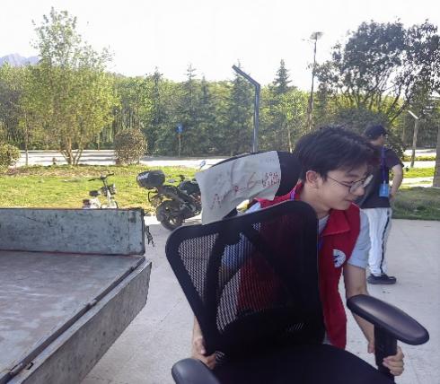 搬迁工作,志愿者们在不同的岗位上积极开展服务。在翱翔重点实验室,第一组志愿者负责协助工作人员进行物品整理、分类、打包及搬运工作,确保每一件物品都能够按计划顺利搬出。与此同时,第二组志愿者在海天苑大楼做好接收工作确保每一件物品都能顺利搬进新教研室。整个搬迁过程中,志愿者们紧密配合,高效有序,展现出极高的责任感。搬迁期间,未发生一起物品丢失或错拿事件。