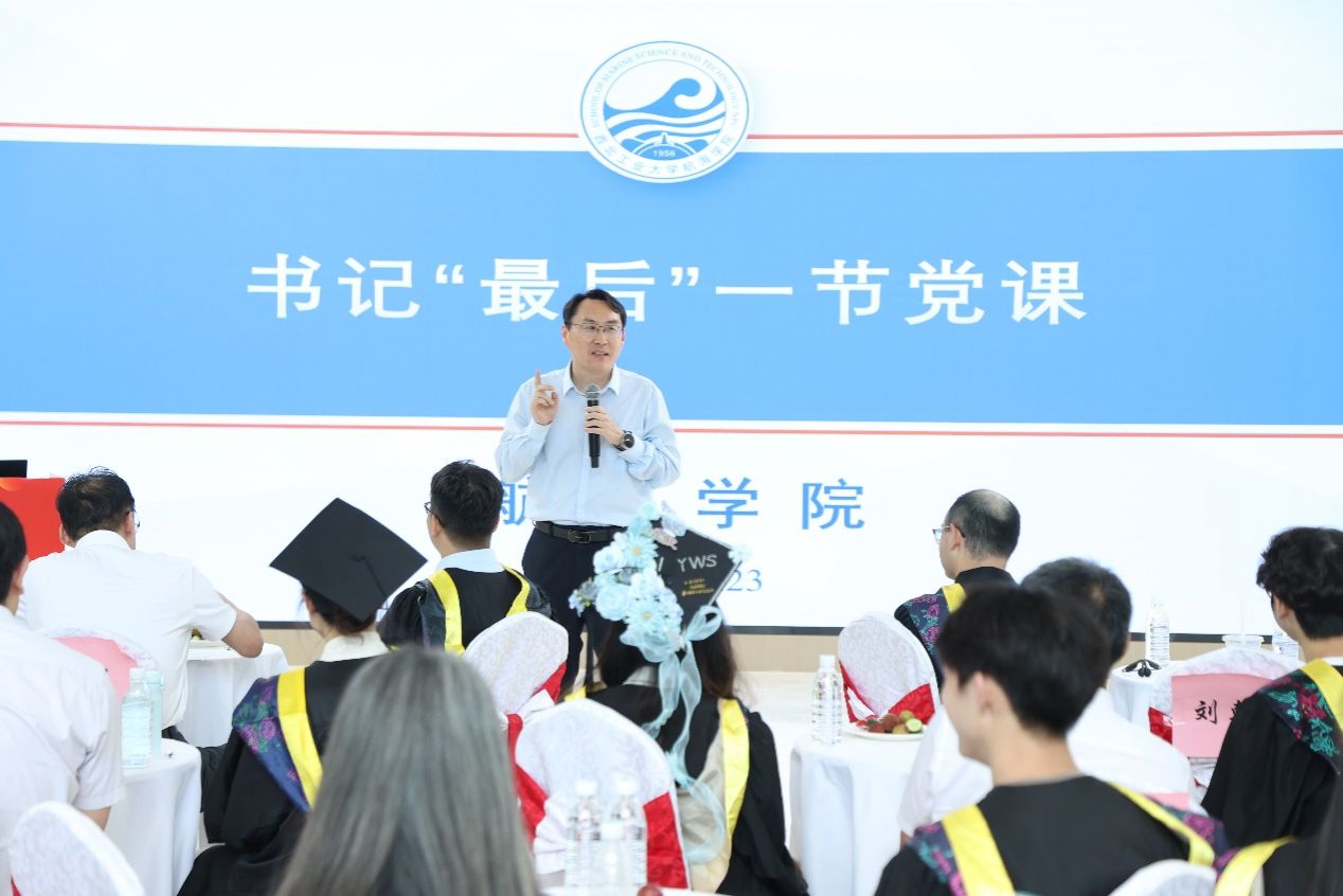 党委书记刘朝亚为毕业生讲授离校前“最后”一节党课。他勉励同学们在奔赴新征程时要锐意进取,将个人理想与时代需求紧密相融,与时代发展同频共振,在祖国的辽阔海域上挥洒汗水,书写不负青春、不负祖国、不负人民的奋斗华章。