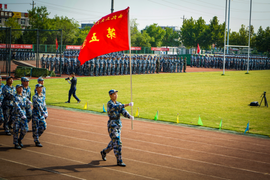 在云天苑操场上,新生们准备接受校领导和师长的检阅。威武的解放军进行曲结束后,汇演正式开始,每一位同学都拿出了最好的精神风貌迎接检阅。