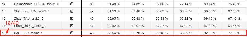 本次参加任务2的研究机构有亚马逊,三星,IBM以及英特尔等国际顶级研发机构和清华大学,伊利诺伊大学香槟分校,电子科技大学这样的国内外知名高校。最终我院声音感知团队从参赛的40多支队伍中脱颖而出,获得国内第二、国际第十八的名次,国际第一由亚马逊声学实验室摘得。