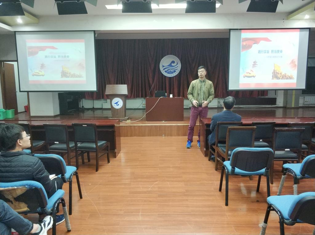 随后,王育才教授为到场的入党积极分子们上了一堂生动且深刻的党课——《践行宗旨 担当使命》。王教授引用了3个不同时代党员践行初心使命的故事,为大家阐述了中国共产党的宗旨,引发了同学们强烈的共鸣。随后,他结合党史为大家系统详细地介绍了党的宗旨确立与发展的过程,使同学们对党的宗旨有了更深刻的认识。最后,王教授告诫同学们:践行党的宗旨是党员的终身课题,勉励大家要自觉践行为人民服务的宗旨,在日常学习生活中要做到:加强学习,坚定理想信念;自省自律,保持思想纯洁;刻苦钻研,历练过硬能力;重视日常实践,养成为人民服务习惯。