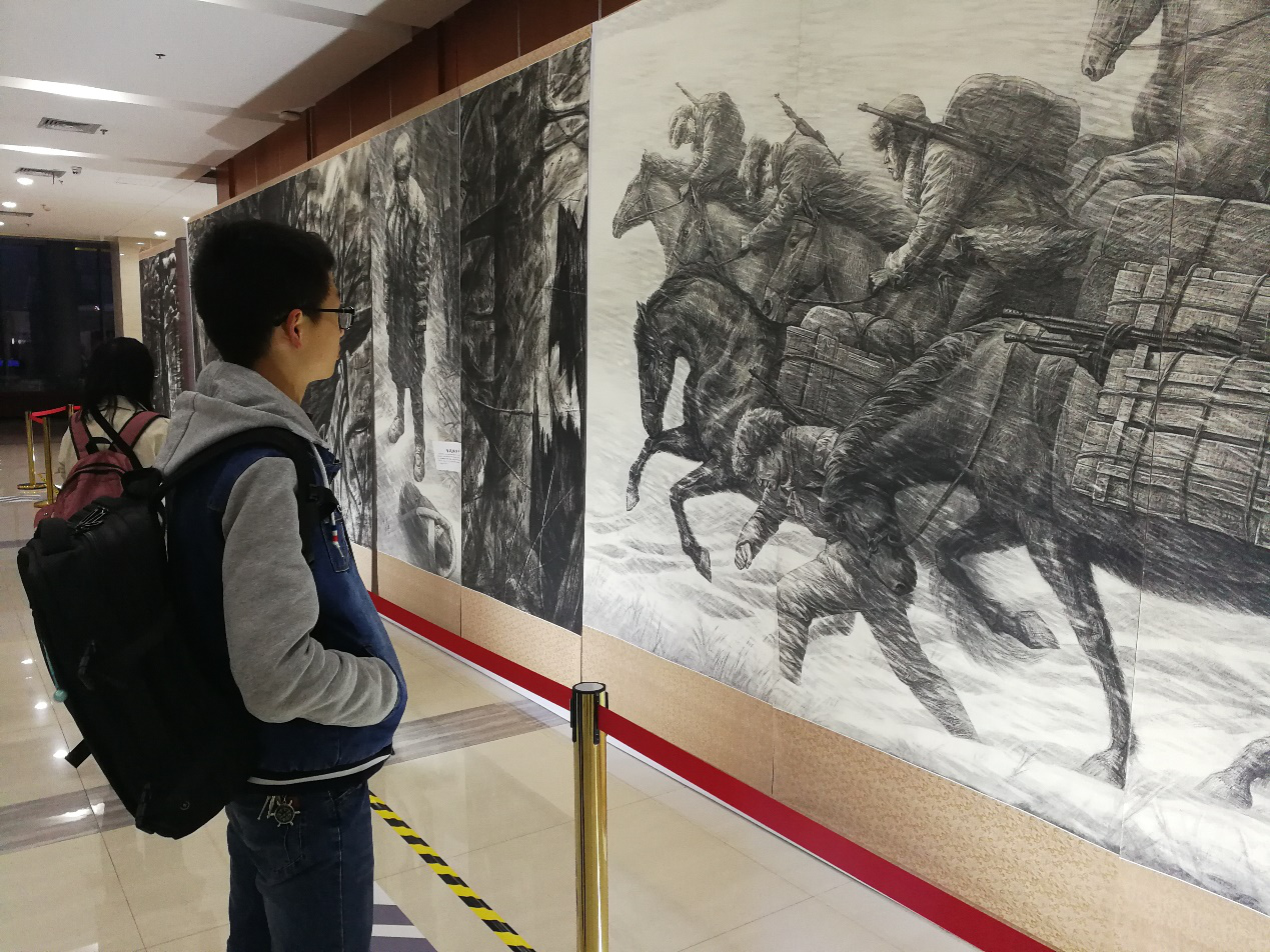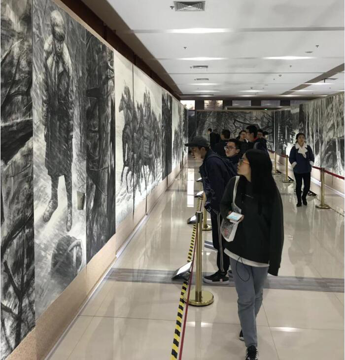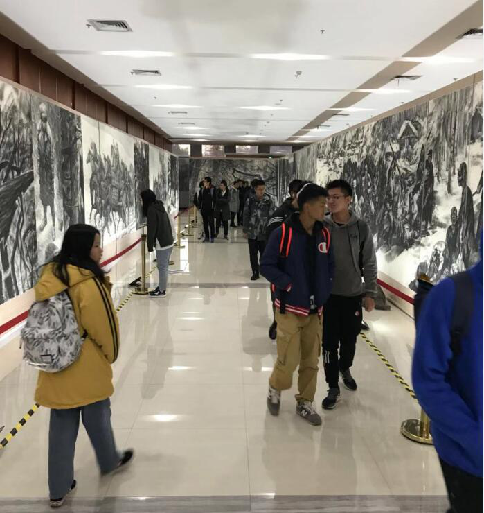 初级党校培训班全体同学前往启真楼一楼参观“抗联之魂”主题全景素描展览。