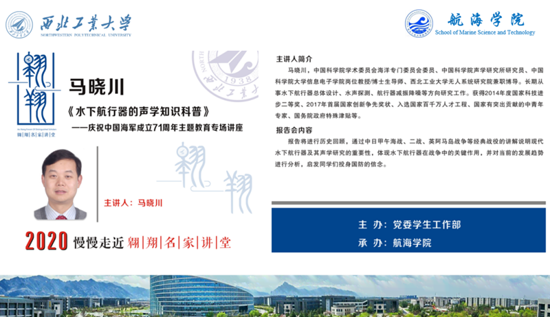 4月23日下午四点整,在人民海军成立71周年之际,1987级校友、中国科学院声学所马晓川研究员做客翱翔名家讲堂,为SM视频