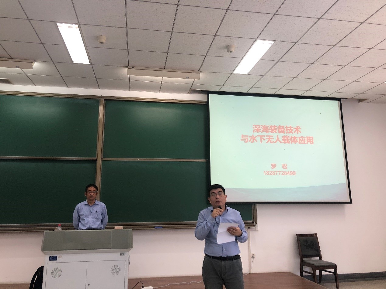 2022年5月6日下午14:00,在长安校区教西D201和教西D202教室迎来“感悟深蓝”课程第二轮的第三讲,由我院杰出校友、中船集团七五〇试验场副总工程师、技术总监罗松研究员主讲,主题为《深海装备技术与水下无人载体应用》。海洋工程类及其他学院共330余名一年级学生到课,SM视频