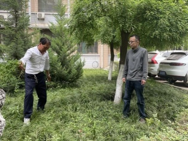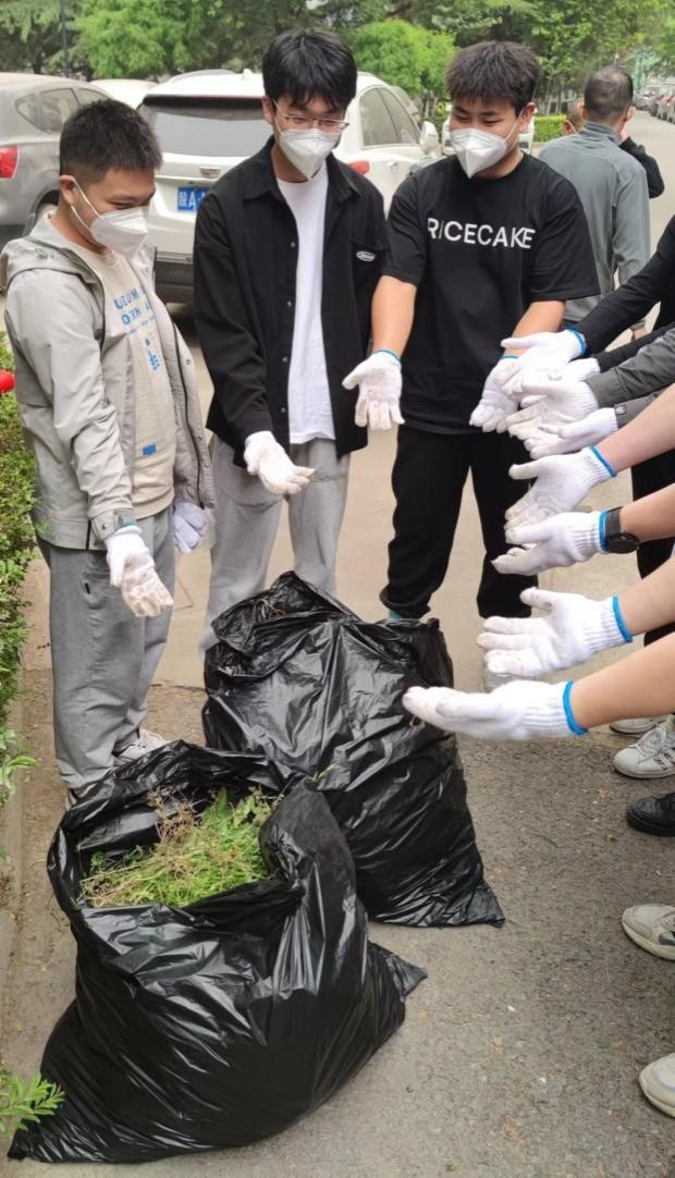 主楼门口集合,在后勤工作人员的安排下,对主楼周边进行卫生清扫、拔除杂草活动。