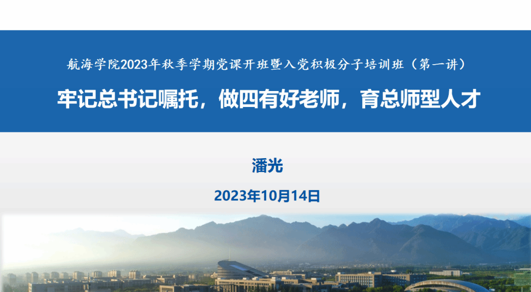 为认真做好党员发展工作,充实党员队伍后备军,确保发展党员质量,10月14日上午,2023年秋季SM视频 党员发展培训班顺利开班,SM视频 院长潘光受邀为入党积极分子培训班带来主题为“牢记总书记嘱托,做四有好老师,育总师型人才”的党课。