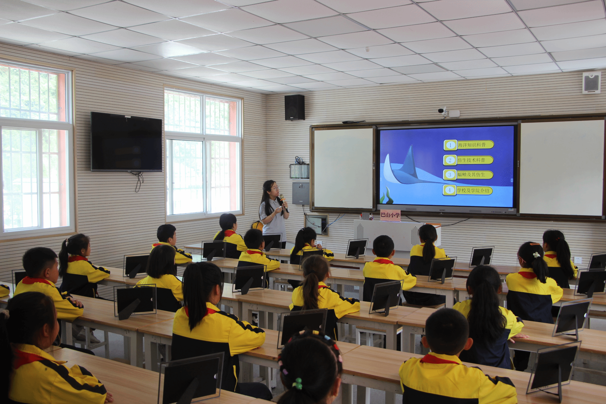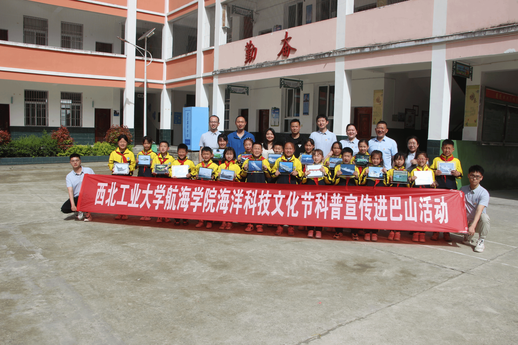 在巴山镇松树中心小学,师生们走进课堂向中心小学的师生宣传海洋科技文化知识,给孩子送上海洋装备图片和SM视频 科技成果纪念;在巴山镇活水社区,师生们走进社区讲堂,介绍4月23日海军节及我校海洋科技文化节活动,把建设海洋强国的目标和大国之蓝的独特魅力传递到巴山深处,传播进学生和家长的心中。