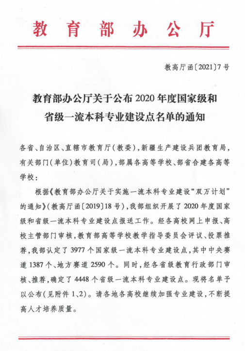 近日,教育部办公厅下发《教育部办公厅关于公布2020年度国家级和省级一流本科专业建设点名单的通知》(教高厅函〔2021〕7号),公布2020年度国家级和省级一流本科专业建设点名单,我院船舶与海洋工程专业获批“2020年度国家级一流本科专业建设点”。