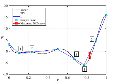 图3 用两种径向基函数来模拟代理模型误差最大处仿真图
