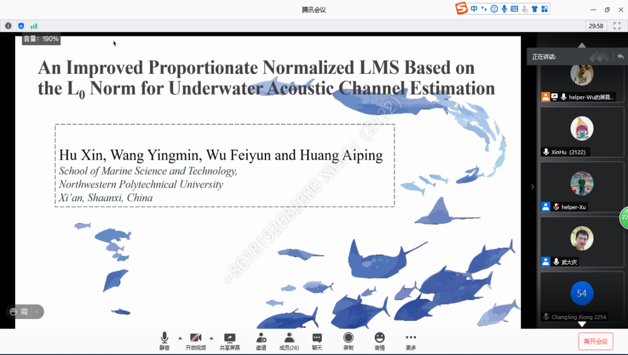克服国际疫情的严重影响,积极推动线上国际交流工作开展。在研究生赴国(境)外交流学习专项资金资助下,共组织36名学生参加了IEEE海洋学会议、IEEE进化计算会议、国际噪声控制工程大会、IEEE国际信号处理、通信和计算会议等高水平国际学术会议并做口头学术报告,充分展示海院学子扎实的科研能力、开阔的国际视野与关注学术前沿问题和国际最新研究成果的科研意识。