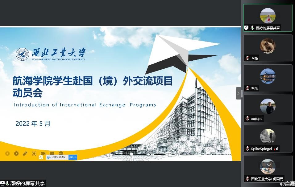 赴国(境)外交流项目线上动员会。学院党委副书记王银涛、国际化秘书邵婷,各年级辅导员及班主任,有意向参与国际化交流同学等七十余人参加了会议。