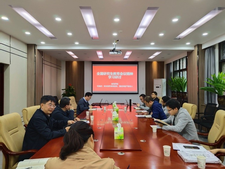 在201会议室召开了落实全国研究生教育会议精神研讨会。会议由杨坤德副院长主持,产教融合先进典型陈克安等教授、学科副主任王海涛、汪勇,各团队代表以及学院研究生工作办公室秘书等10余人参加了会议。