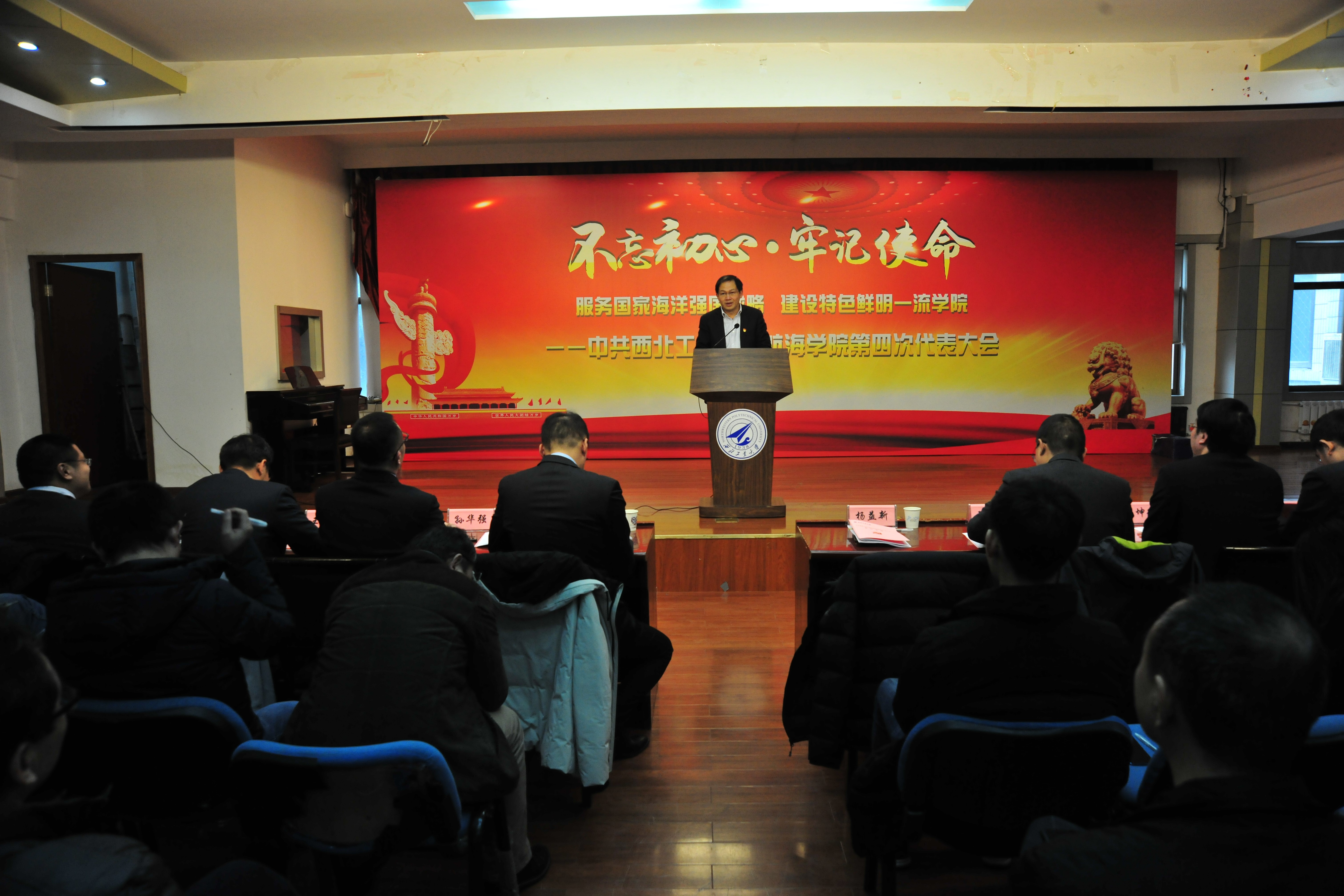 大会在雄浑嘹亮的国歌声中拉开序幕。首先,学院党委副书记(主持工作)孙华强代表中国共产党SM视频 第三届委员会,作了题为《不忘初心、牢记使命,服务国家海洋强国战略,建设特色鲜明一流学院》的报告,对学院四年来的工作进行了总结和回顾,分析了学院面临的机遇和挑战,展望了未来五年学院下一届党委的工作设想和任务。报告指出,新时代赋予新使命,新发展带来新机遇,新要求提出新任务。我们必须登高望远,忠诚担当,戮力同心,勇往直前,把机遇转化为加快学院事业发展的新优势,把挑战转化为学院向奋斗目标迈进的新动力,主动对标看齐,争创一流,不断提升学院办学水平和核心竞争力,践行为党育人、为国育才的初心使命,落实立德树人根本任务,抢抓机遇,乘势而上,主动作为,在建设海洋强国的历史使命中贡献学院力量!